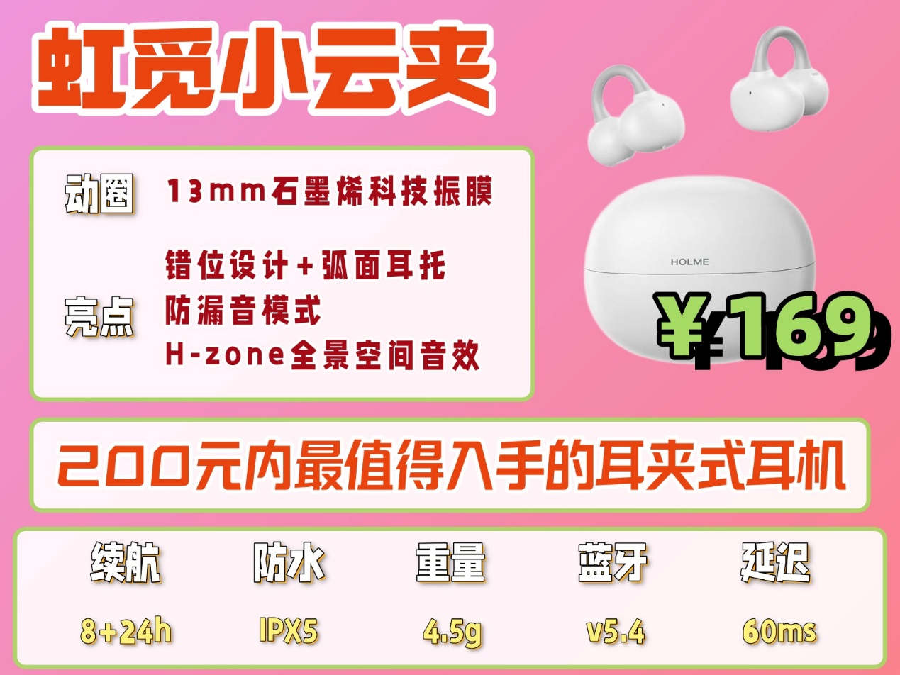说到耳夹式耳机,大家能想到的品牌不少,选的时候可以重点看两类:一类是虹觅、JBL 这类技术成熟、研发实力扎实的品牌,另一类就是华为、小米这样的知名大牌,不仅用户口碑稳,售后服务也更有保障,都是比较靠谱的选择。