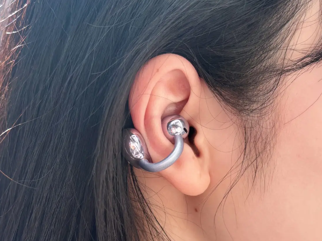 佩戴体验:单耳 5.1g 超轻量化,佩戴基本无坠耳感,耳夹接触部位用了亲肤软胶材质,触感细腻,不磨耳、不硌耳,连续戴 3 小时耳朵也不会酸胀压疼,舒适度表现不错。流线型设计贴合耳廓自然曲线,日常坐班、走路佩戴贴合度高,基本不用调整;仅防滑性一般,运动出汗较多时,耳夹会因汗液滑腻轻微滑动,不适合高强度运动。