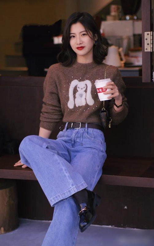 然后裤管宽度别太夸张,比自己腿围宽2倍刚好:太宽的话走路像裹着布袋子,风一吹全贴在腿上,反而显壮;直筒款最保险,腿弯、腿粗、假胯宽都能遮,我闺蜜腿上有肌肉,穿直筒牛仔阔腿裤配小白鞋,同事都问她是不是偷偷去练了腿。