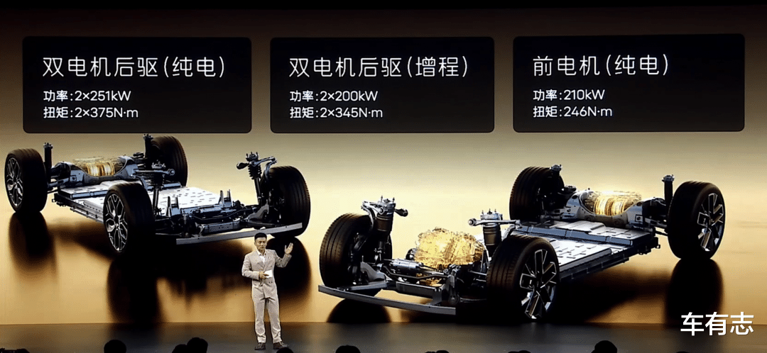 新阿维塔12最大的变化,是彻底告别了单电机版本。全系双电机起步,顶配直接上三电机四驱,前置单电机加后置双电机的组合,总功率达到惊人的712kW(约968马力),零百加速仅需2.71秒,比小米SU7 Max的2.78秒还快一丢丢。