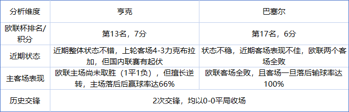 明天的欧联杯比赛,亨克在主场拥有一定的优势,但巴塞尔也并非没有机会。我把两队的关键数据整理成了一个表格。