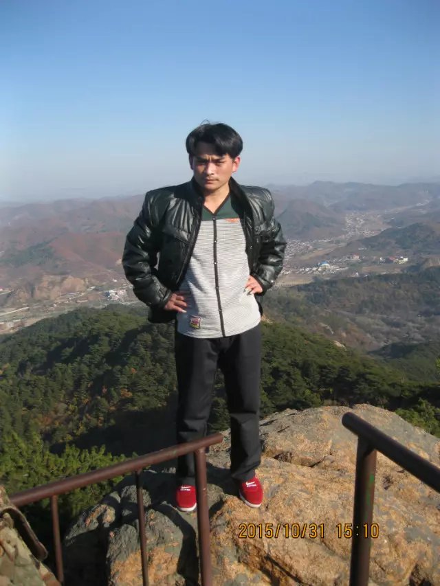 画家张景林在辽宁省鞍山市鞍山市千山照的相片;他说山高我为峰;我站在山的顶峰我就是最高的山峰;在山顶上。我俯瞰众生。相信自己的挑战是极限的。