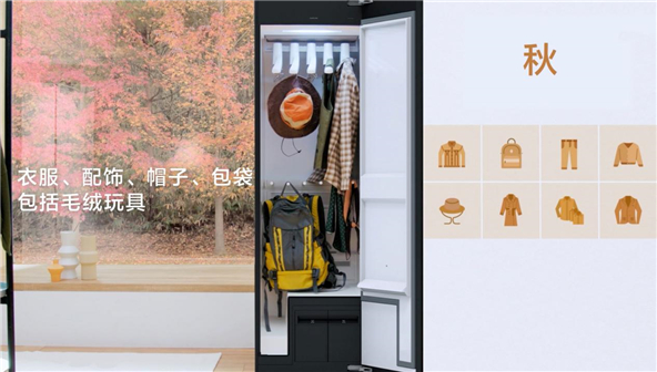 打开柜门还可发现,“小身材”却拥有“大容量”。三星AI神 黑钻衣物护理机的纤薄机身蕴藏了同时护理9件衣物的强大实力,长衣护理区的设计让长款风衣与大衣远离毛发困扰,同时省去了往返干洗店护理衣服的时间与精力,高效恢复整洁清新,让全家衣物护理一步到位。内置的多功能置物架实现了一机多用,让这台机器既可作为日常护衣柜,更是宠物用品专属收纳区——清洗后的玩具、垫子在此得到妥善护理与存放,给空间更多留白,让家居整洁有序。