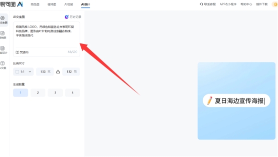 易可图提供了完整的AI文生图功能,支持用户仅凭文案描述生成图片素材,覆盖 logo、海报、商品图和绘画风格图片等多种类型。