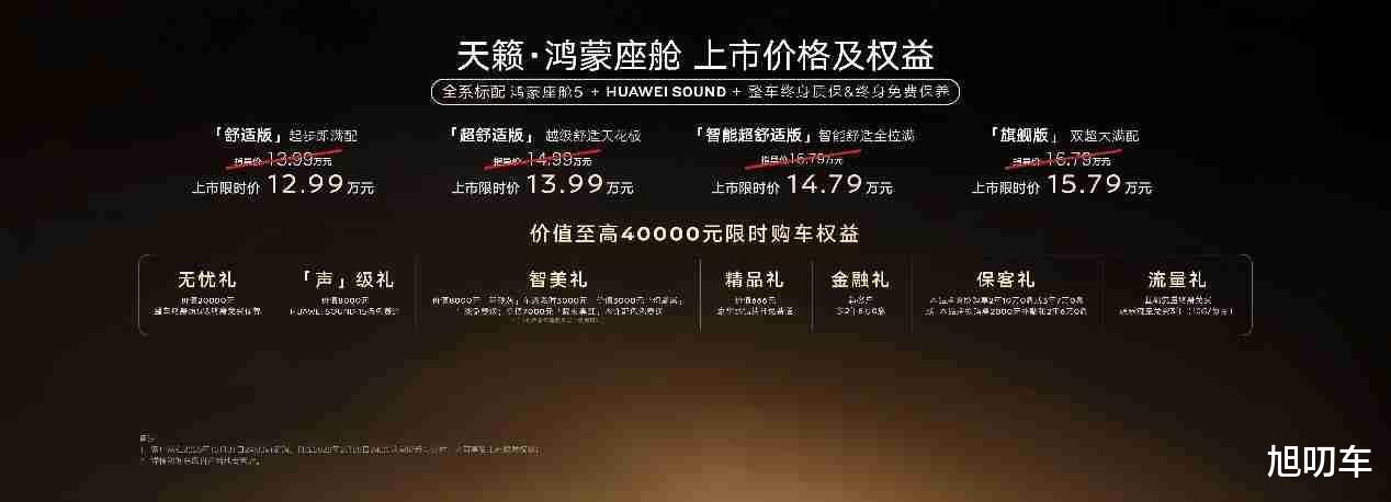 为诚挚回馈首批用户,天籁·鸿蒙座舱特别推出超级置换金1万元,上市限时诚意价12.99-15.79万元,全系标配鸿蒙座舱5及HUAWEI SOUND,让智能舒适的用车体验更加触手可及。