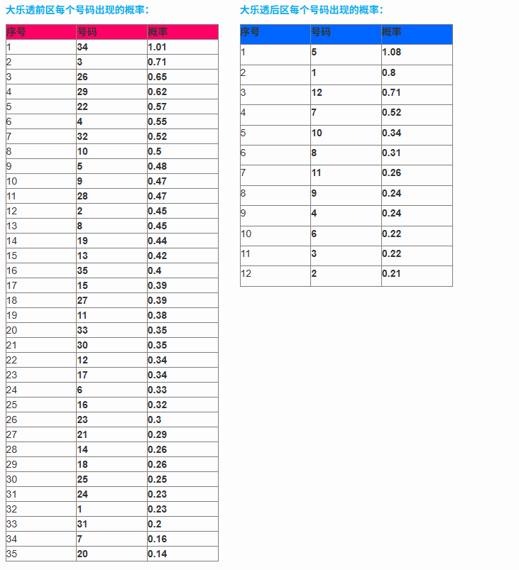 概率数据如下: