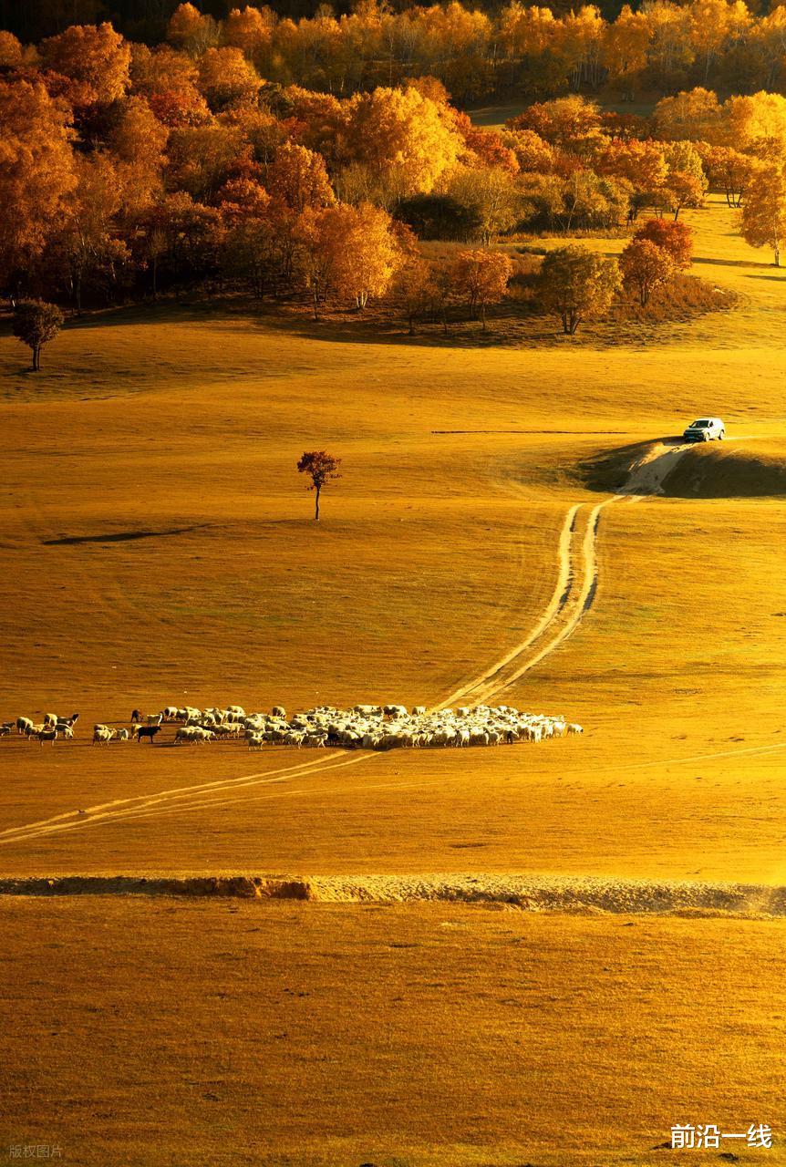 欣赏秋天金色满园。