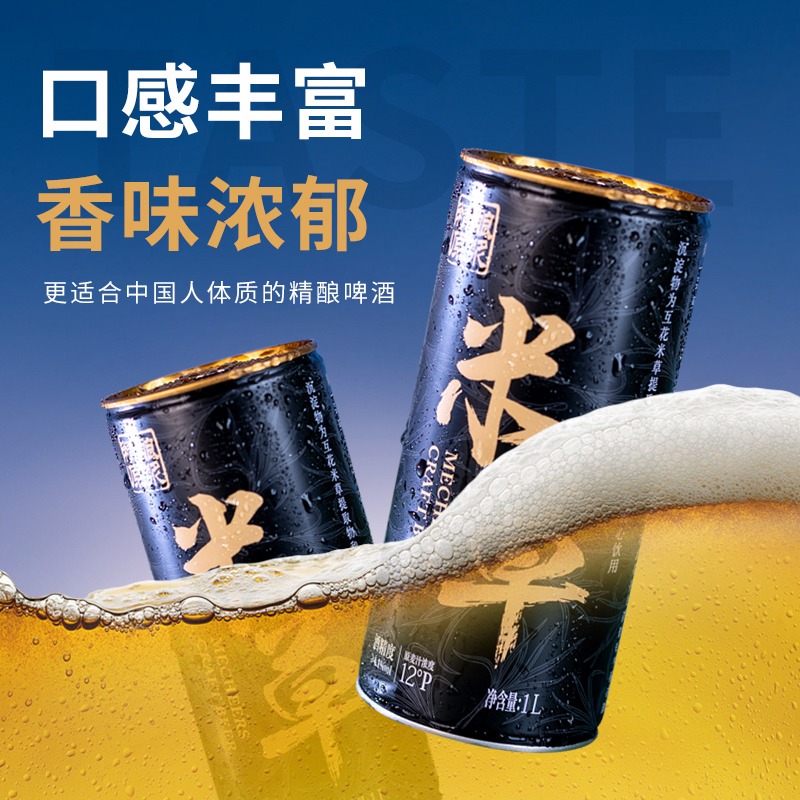 米草精酿啤酒的产品类型丰富,有330ml 易拉罐、500ml易拉罐、1L马口铁(黑金德式白啤)、1L马口铁(黑啤)等常规包装,满足不同消费者的容量需求。此外,还推出了33个地域联名款,如南京、海南、太原、临沂等城市的特色包装,不仅在口味上满足消费者对啤酒的需求,还在文化内涵上与各地消费者建立情感连接。