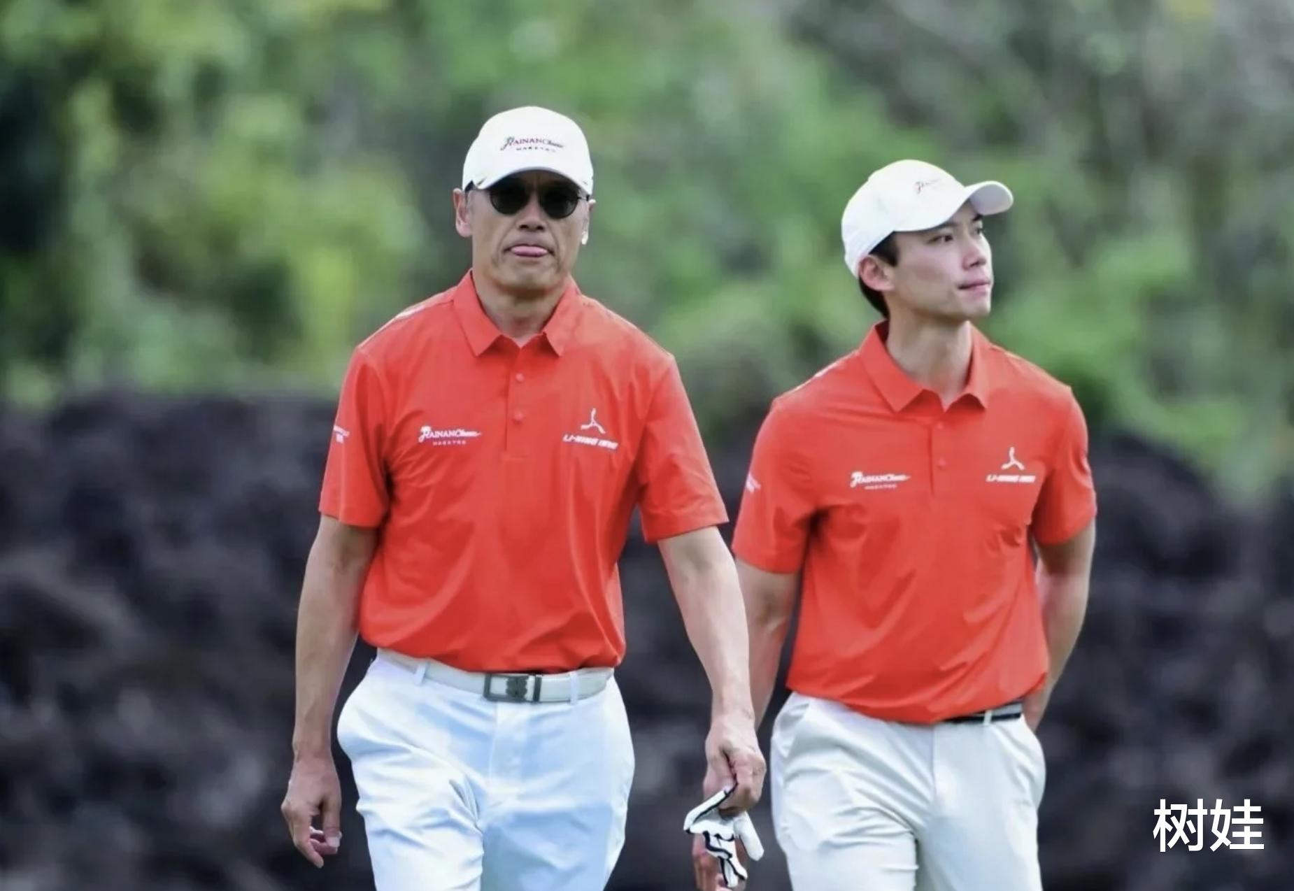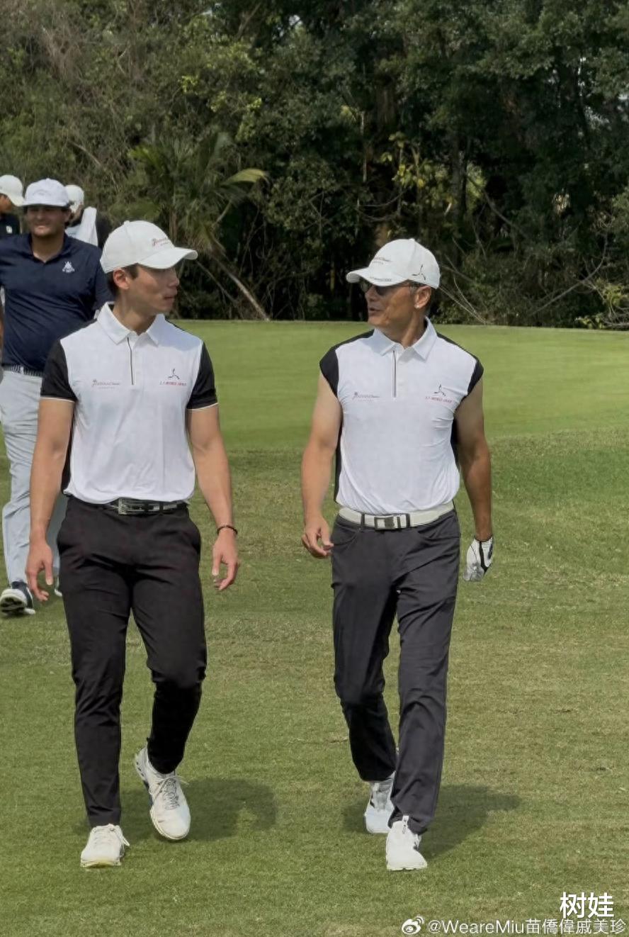 苗侨伟与儿子苗俊现身在海口观澜湖高尔夫球场,不是来观看比赛,而是一起来参加比赛。父子俩参加的是职业与业余配对赛(pro-am),这样的比赛很难得,而且又是父子组队。比赛按照正规赛事进行,父子俩穿上同款的球服,戴上同款白色帽子,都相当有型,尤其是苗侨伟,他已经67岁了,虽然不是钢筋般的身材,然而穿上了紧身球服,撸起袖口之后,透着衣服都能感受到他肌肉的结实,小肚子平实,还有胸肌,手臂没有赘肉不说还有线条,丝毫不比32岁的儿子差。