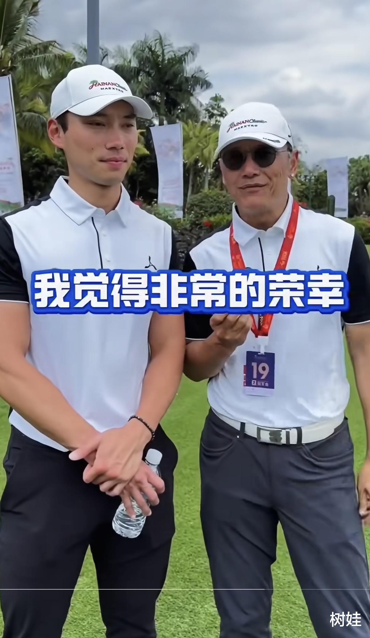 这是苗侨伟父子第一次在内地参加职业与业余的配对赛,所以两人都很兴奋,聊起高尔夫球就滔滔不绝,看得出两人都是高尔夫球的爱好者。事实上,苗侨伟虽然不是专业高尔夫球运动员,但也是业余这一块中的精英运动员。他在香港是香港艺人高尔夫球协会的会员,还是骨干,曾经参加过不少赛事,拿奖无数,这些年更倾向于打慈善赛。而苗侨伟的儿子苗俊大概是受到父亲的影响,从小对打高尔夫球就很喜爱,一直保持着打球的兴趣爱好直到如今,不只是在加拿大坚持打球,每次回香港也会与苗侨伟一起去打球,因此父子之间的默契十足。