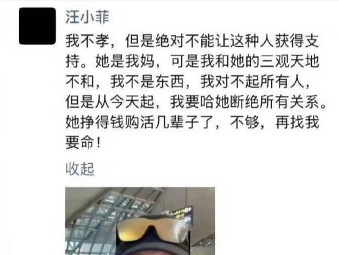而汪小菲过去多次与张兰隔空大吵,去年大S骤逝,张兰被控造谣汪小菲出钱包机将前妻骨灰载回台湾,不仅引来小S否认,汪小菲也在直播中打给张兰飙粗口痛骂,汪小菲事后在微信朋友圈贴出张兰照片,宣布和妈妈断绝关系,写下:「我不孝,但绝对不能让这种人获得支持。 她是我妈,可是我和她的三观天地不和,我不是东西,我对不起所有人,但是从今天起,我要哈(和)她断绝所有关系。 她挣得钱购(够)活几辈子了,不够,再找我要命!」,不久后母子俩低调和解,使外界雾里看花。