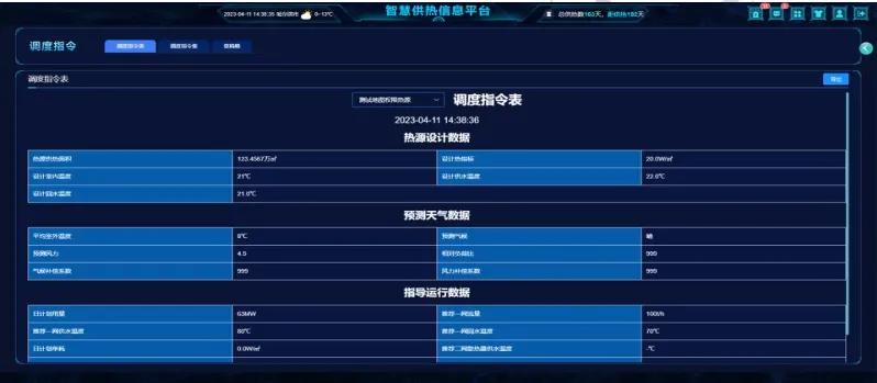 当调度员基于负荷预测结果做出决策后,【调度指令】功能便将决策转化为标准化的执行命令。调度员可以在平台内录入每日热网需要的各项供热参数(如供水温度、压力等),形成清晰、规范的“调度令”。