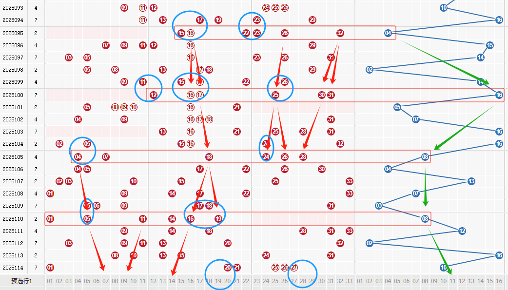 再看红球的和值(即6个红球相加的总和):110期和值66,111期133,112期88,113期101,114期120。和值在66到133之间波动,平均约101.6。和值太高或太低都少见,近期集中在80-120之间,建议你选号时瞄准这个范围,避免数字过于分散。