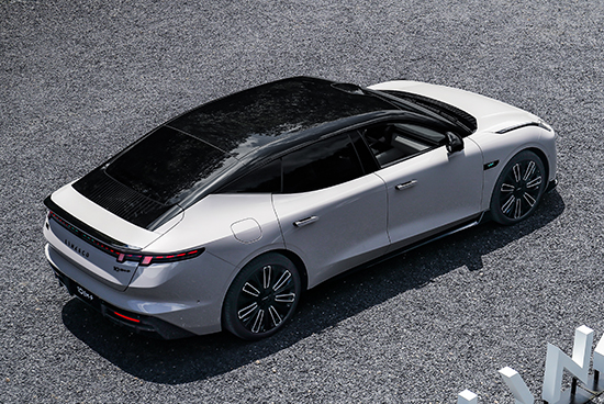 侧面采用了典型的轿跑风格,车身线条修长、动感,当下流行的隐藏式门把手也没有缺席,令其拥有极低的风阻系数。再搭配21英寸大尺寸熏黑轮毂,运动氛围营造得极其出色。车身尺寸方面,其长宽高分别为5050mm*1966mm*1487mm,轴距达到3005mm。