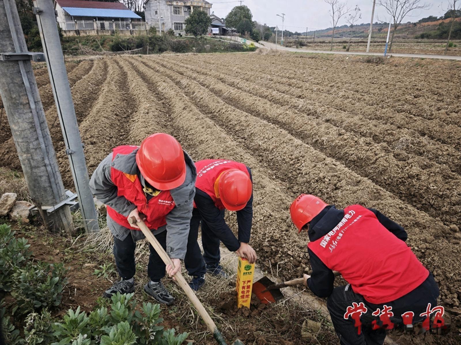 常德日报记者 蔡文龙 通讯员 熊凯文 高玉森 文/图 近日,国网临澧县供电公司组织“电骡子”东方红共产党员服务队在10千伏青太线324线路增设电缆警示标识,开展电网防外力破坏专项巡视,重点排查地下电缆与裸露拉线隐患,筑牢县域电网安全防线。