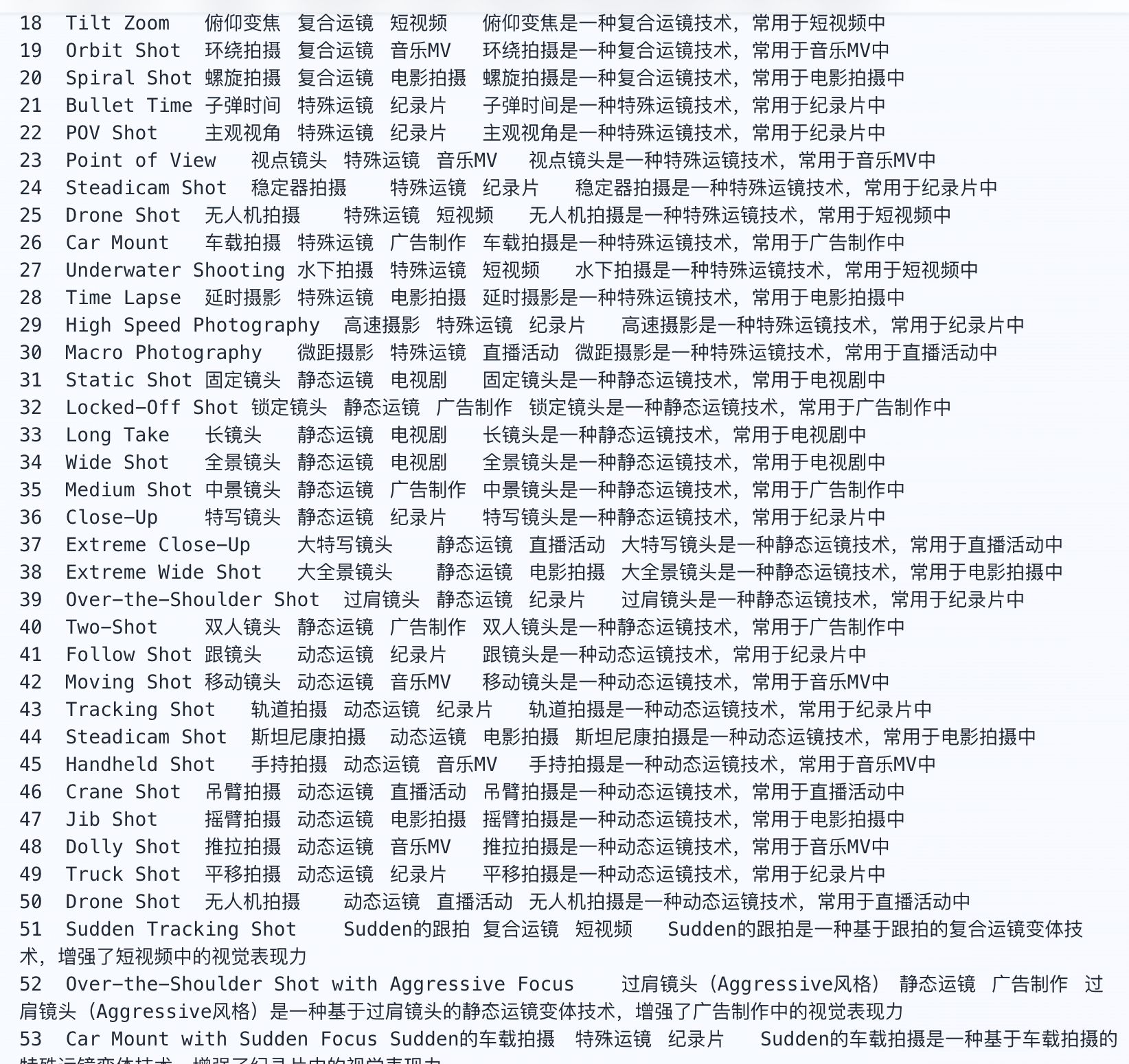 作为一名产品经理和心理学爱好者,我有个习惯:喜欢把事情结构化。 所以我花了一周时间,扒了上千个优质视频案例,反向拆解并清洗出了250个标准运镜提示词。