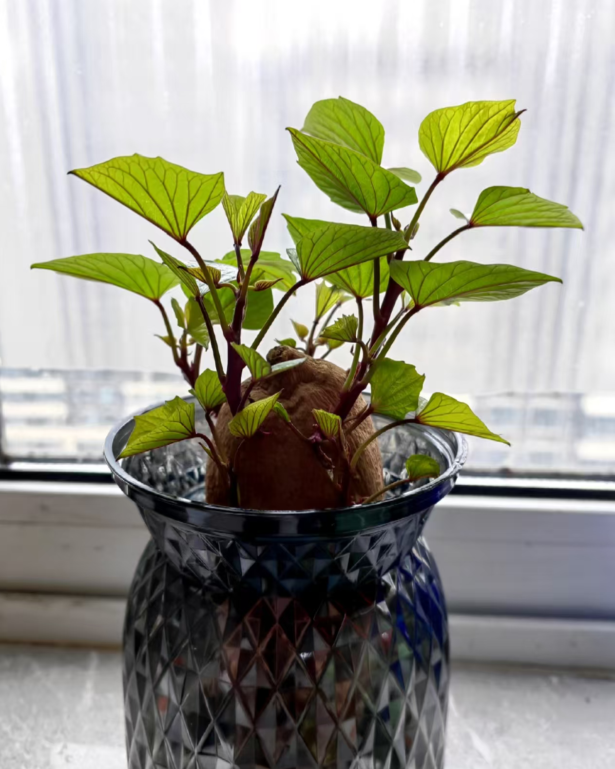 过不了几天,你会惊喜地发现,红薯的芽开始变长了,变得更加嫩绿。它就像一个调皮的孩子,迫不及待地想要探出头来看看这个世界。