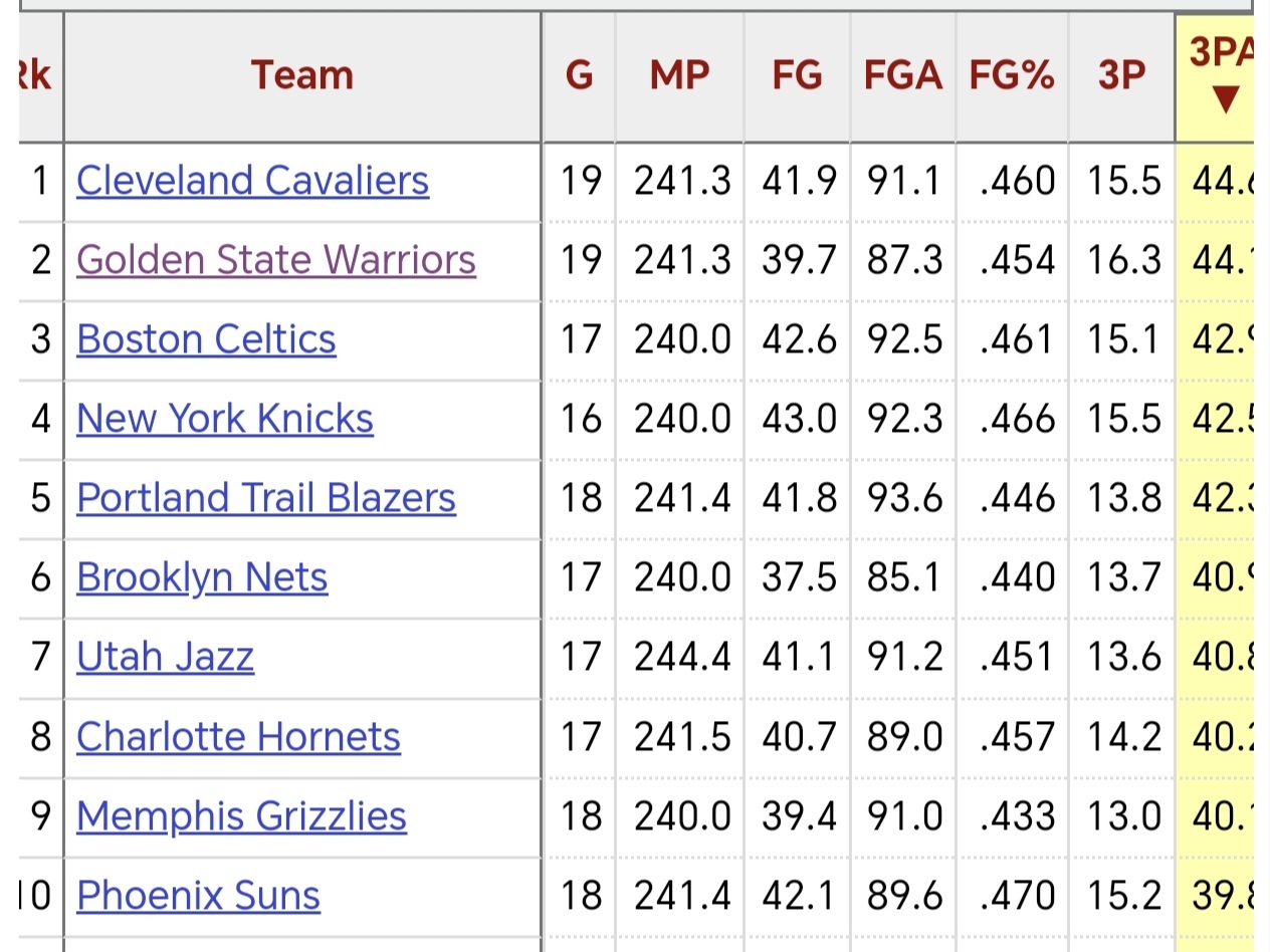 现在领跑的球队中,对三分球的依赖越来越低,或者说在教练组们挖空心思拓宽空间的同时,越来越多的球队和球星降低了远投的权重。