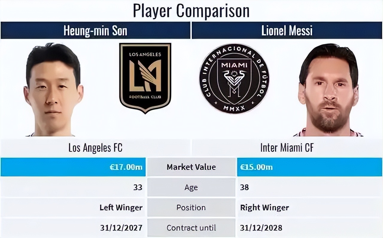 单从个人数据与团队荣誉来看,这是一场梅西对孙兴慜的“全面碾压”。