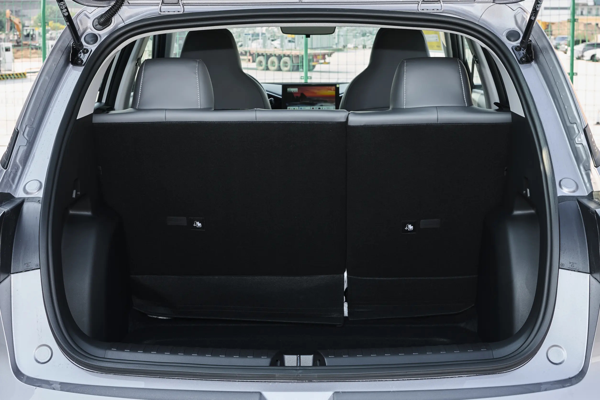 对家用车来说,乘坐空间是需要重点考量的点,毕竟不管是日常通勤,还是带家人出行,乘坐舒适度都很关键。我身高183cm,将驾驶座调整到舒适位置后,头部还有一拳多的剩余空间,开车时不会有顶头的压抑感,视野也比较开阔,不管是观山湖的平坦路段,还是黔灵山周边的坡路,都能有较好的视线。每天上下班驾驶四五十分钟,座椅支撑性中规中矩,腰部不会有明显的疲累感,坐垫软硬程度也比较符合家用车的需求。这款车为5门5座两厢结构,轴距2650mm,保持前排座椅位置不变,坐在后排时,腿部还有一拳多到两拳的空间,头部空间也比较充裕,不会觉得拥挤。后排地板采用纯平设计,满载三人时,中间乘客的腿部也能自然摆放,长时间乘坐不会太过难受,周末带家人前往青岩古镇、花溪公园游玩,后排乘坐体验也比较舒适,在同价位小型纯电车中,这样的空间表现能满足日常家用需求。