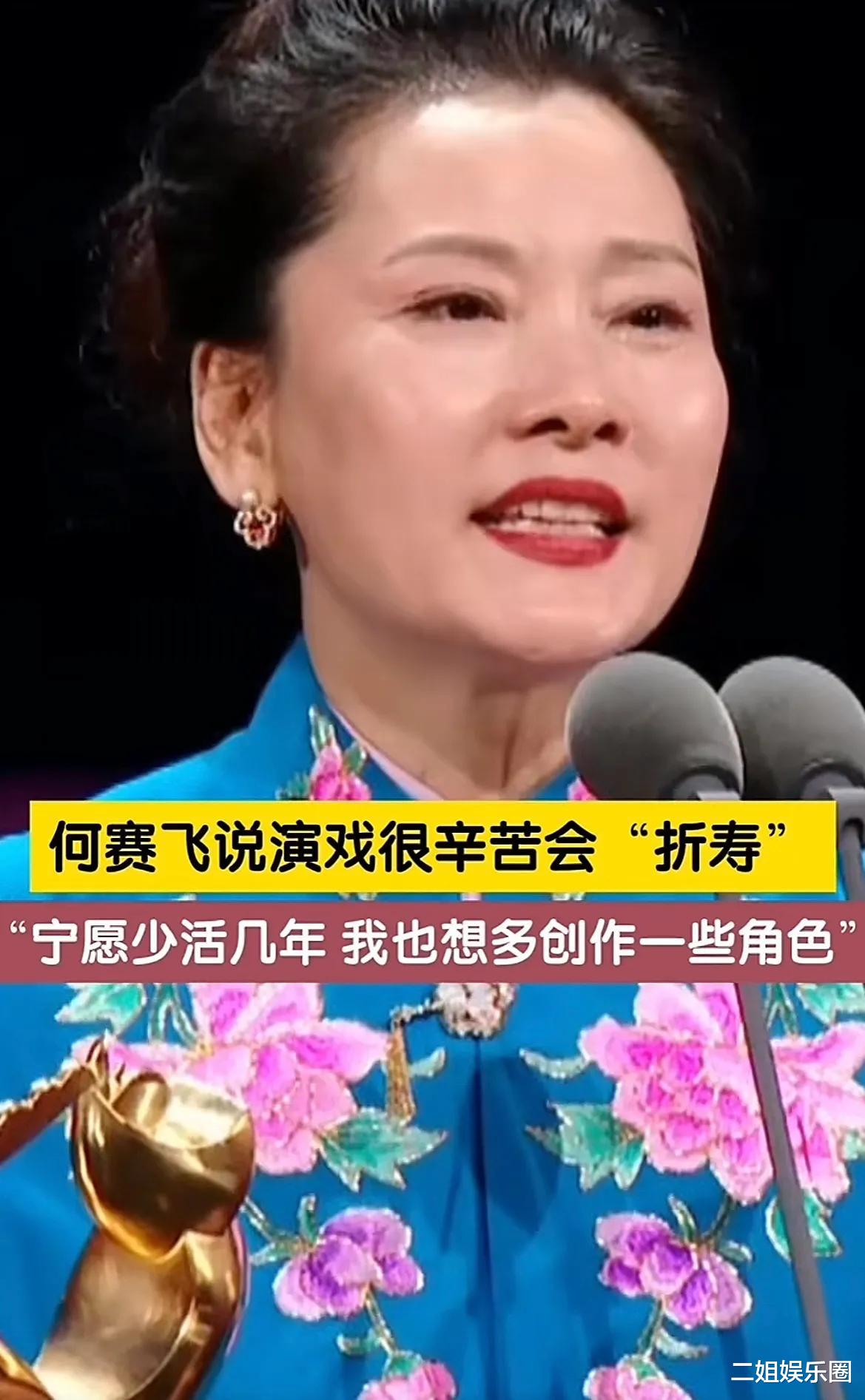 在获得金鸡影后时,一会泪洒舞台,一会掩面大笑,哭哭笑笑,真性情流露,像孩童一样,谈及演戏,却认真起来:宁愿少活几年,也想多创作一些角色。