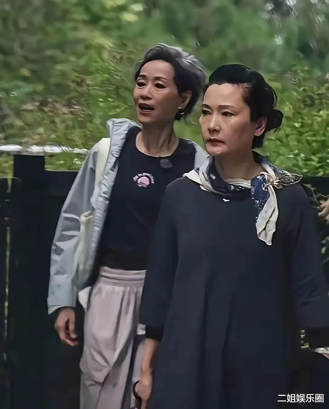几次被拍到路透照片,相较两旁刘晓庆的亲和、叶童的松弛,何赛飞总是摆着一张脸,眉头拧着,连一丝笑意都吝啬展露。