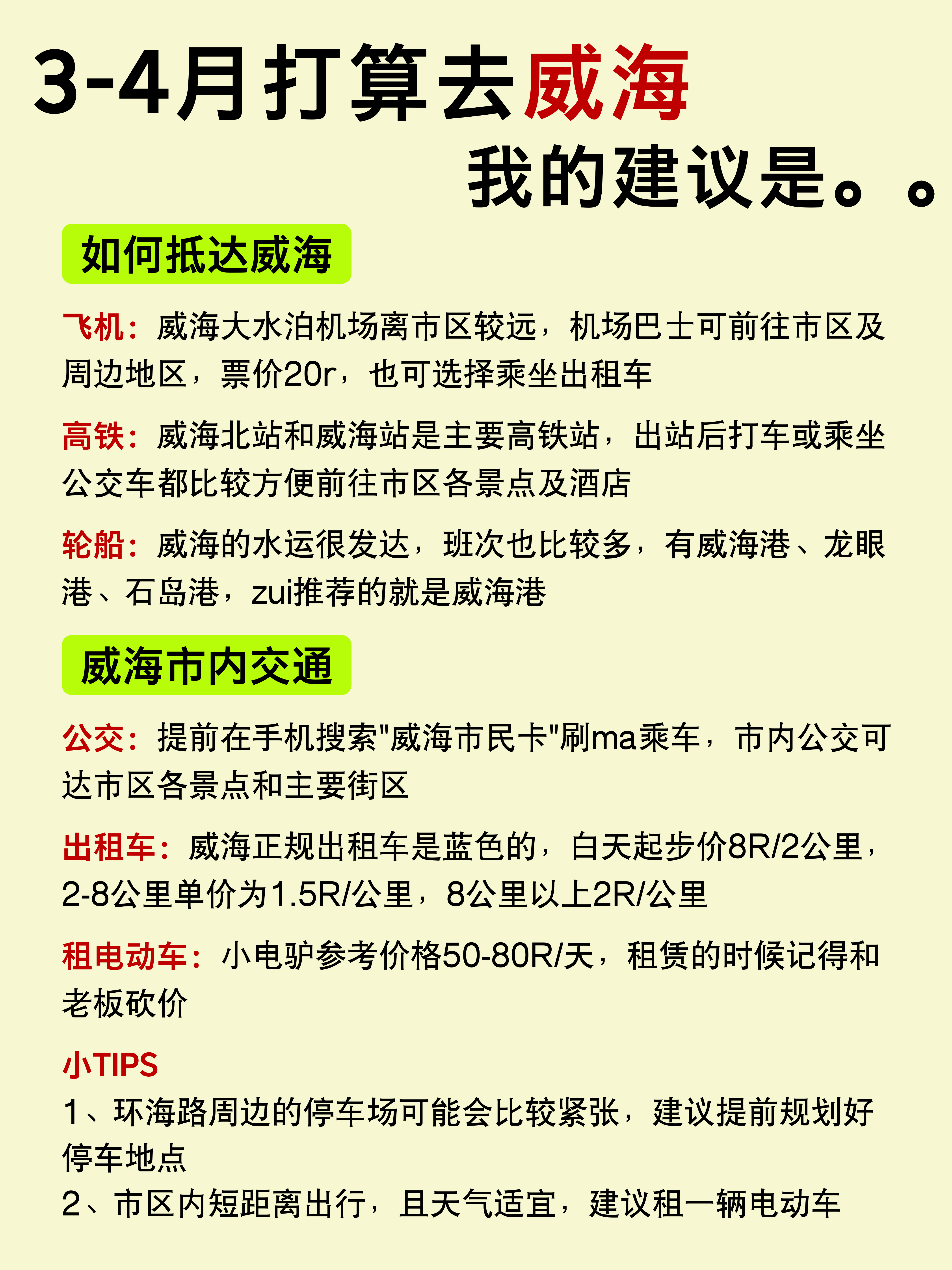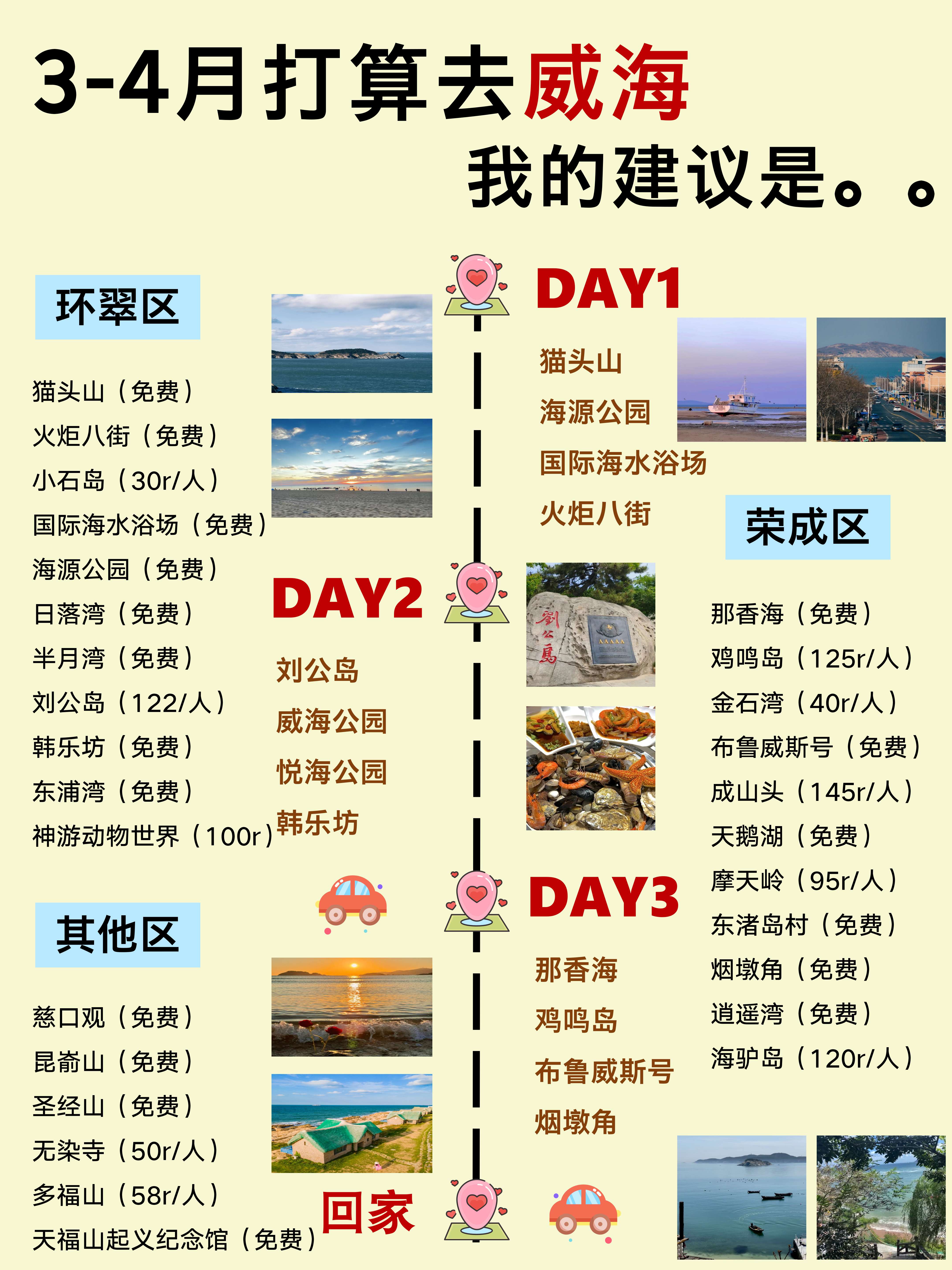 (✨小贴士:威海景点比较分散,建议按区域玩,晴天海更蓝哦!)
