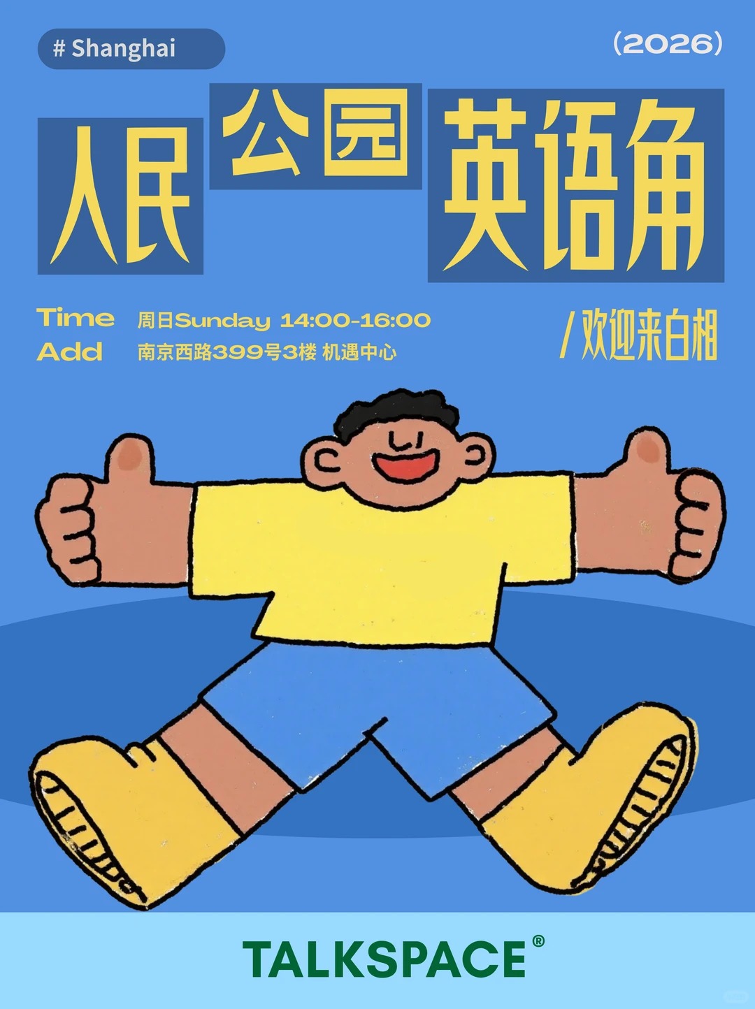 上海的宝子们看过来👀人民公园英语角搞事情啦!‼2026年春节前最后两场,错过真的要等过年后啦😭不用社恐!这里没有死板的语法课,就是一群想练口语、想交朋友的人聚在一起瞎聊🤪从日常吃喝玩到职场八卦,啥都能说,主打一个轻松自在~🗣⏰时间:每周日下午14:00-16:00(春节前最后一场,冲鸭!)📍地址:南京西路399号3楼机遇中心