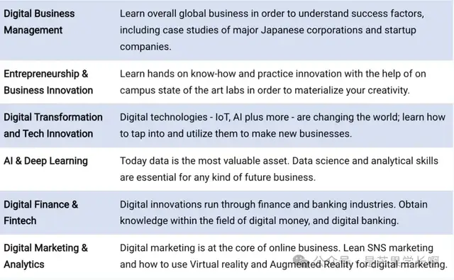 技术引领着未来,改变着各地的企业。开设数字商务与创新(DBI)专业的目的是通过在商务和技术之间架起一座桥梁,帮助当代学生适应当前的劳动力市场。这意味着学生将获得如何利用新技术创新产品、服务和商业模式的知识。学生将学习如何识别和构思关键技术和平台,以及如何调整这些技术和平台以促进业务创新。DBI分成六个集中模块,分别侧重于数字商务的不同领域:创业与商业创新、人工智能与深度学习、数字转型与技术创新、数字营销与分析、数字金融与金融科技以及数字商业管理。该专业为任何对未来教育感兴趣的人提供了重点领域。