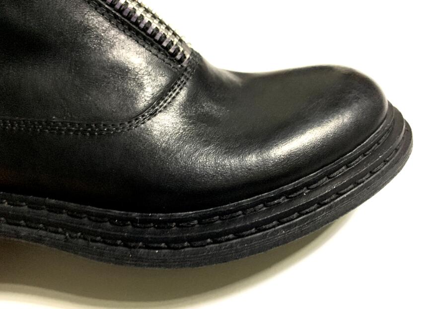 GUIDI新款的大底与之前的版本有所变化,工艺更复杂了,在真皮大底增加了手工拉丝的工艺效果。