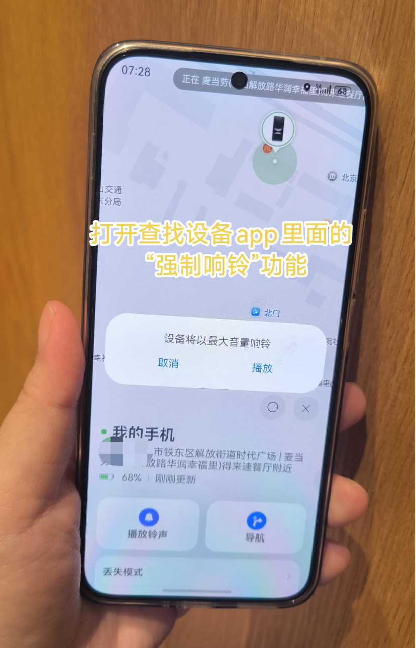 手机遗失最怕被静音或者关机,华为手机“查找设备”第一招:强制响铃。在手机静音状态下,我试了一下“播放铃声”,手机直接以最大音量响铃,可以靠“听声辨位”找线索。