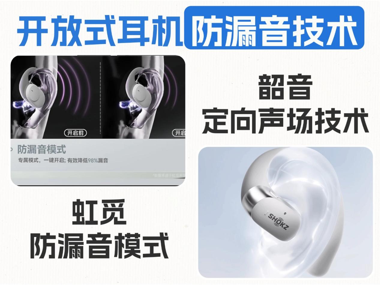 在过去,漏音可以说是开放式耳机的一大通病,可随着技术持续迭代升级,如今日常使用时的漏音问题已经得到了大幅改善。虽说做不到完全没有漏音,可已经不会影响正常使用了。像是华为的逆声场系统、开石的低音聚能腔,以及虹觅的专属防漏音模式,都能很好地优化漏音这一问题。