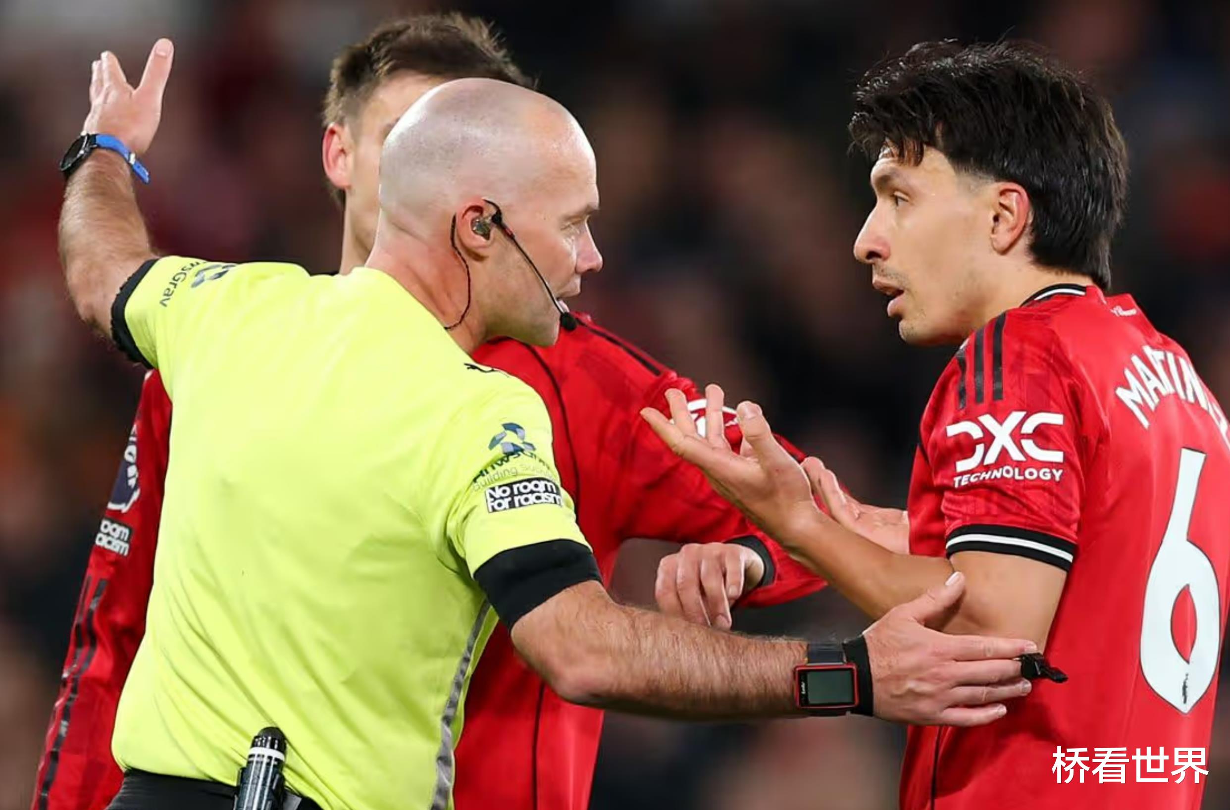 当主裁判掏出红牌时,马丁内斯一脸茫然。曼联球迷和球员们都对这一罚下决定感到极度愤怒。