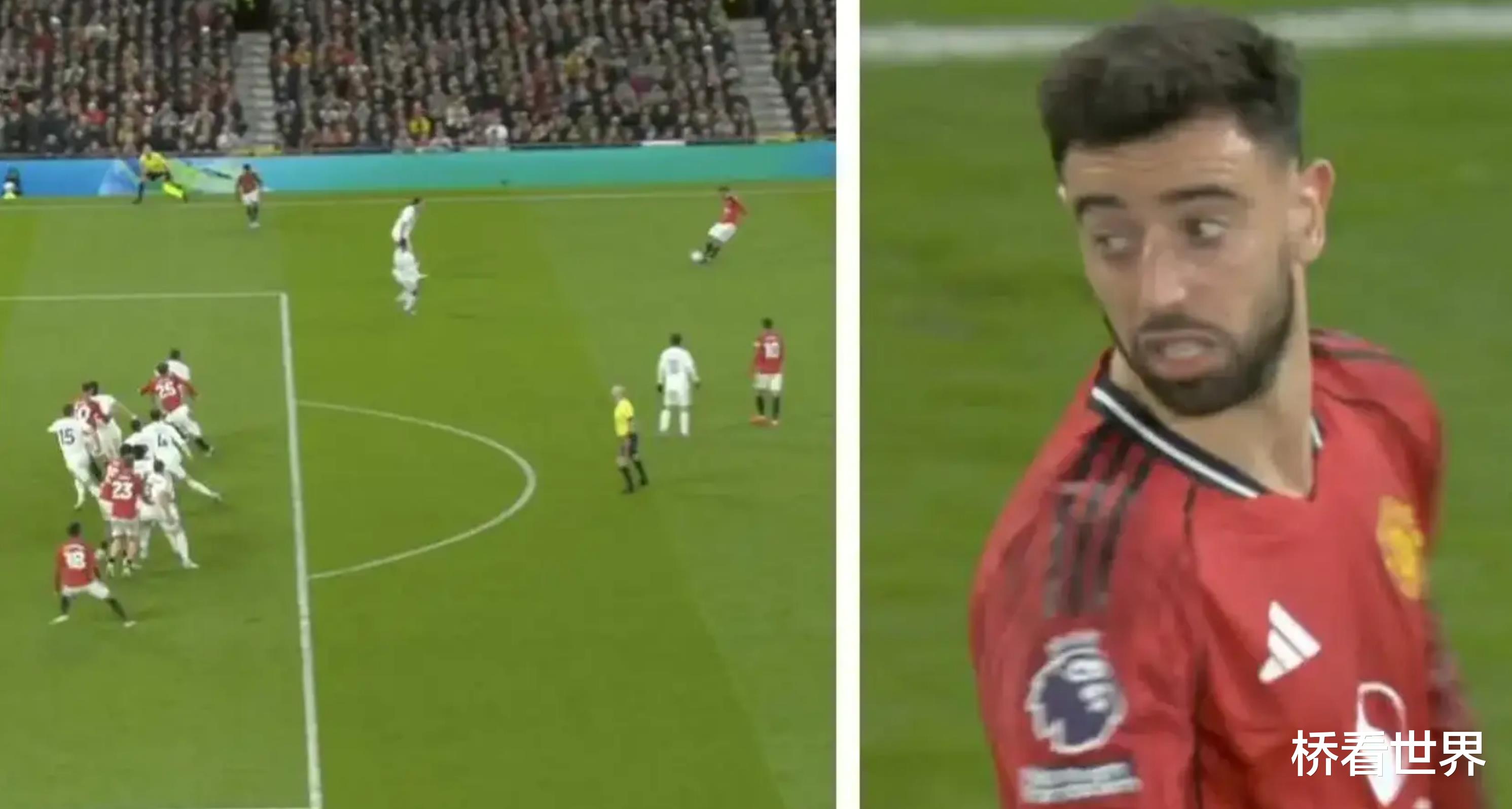 【布鲁诺·费尔南德斯在不敌利兹联后,原地呆立被镜头拍下】