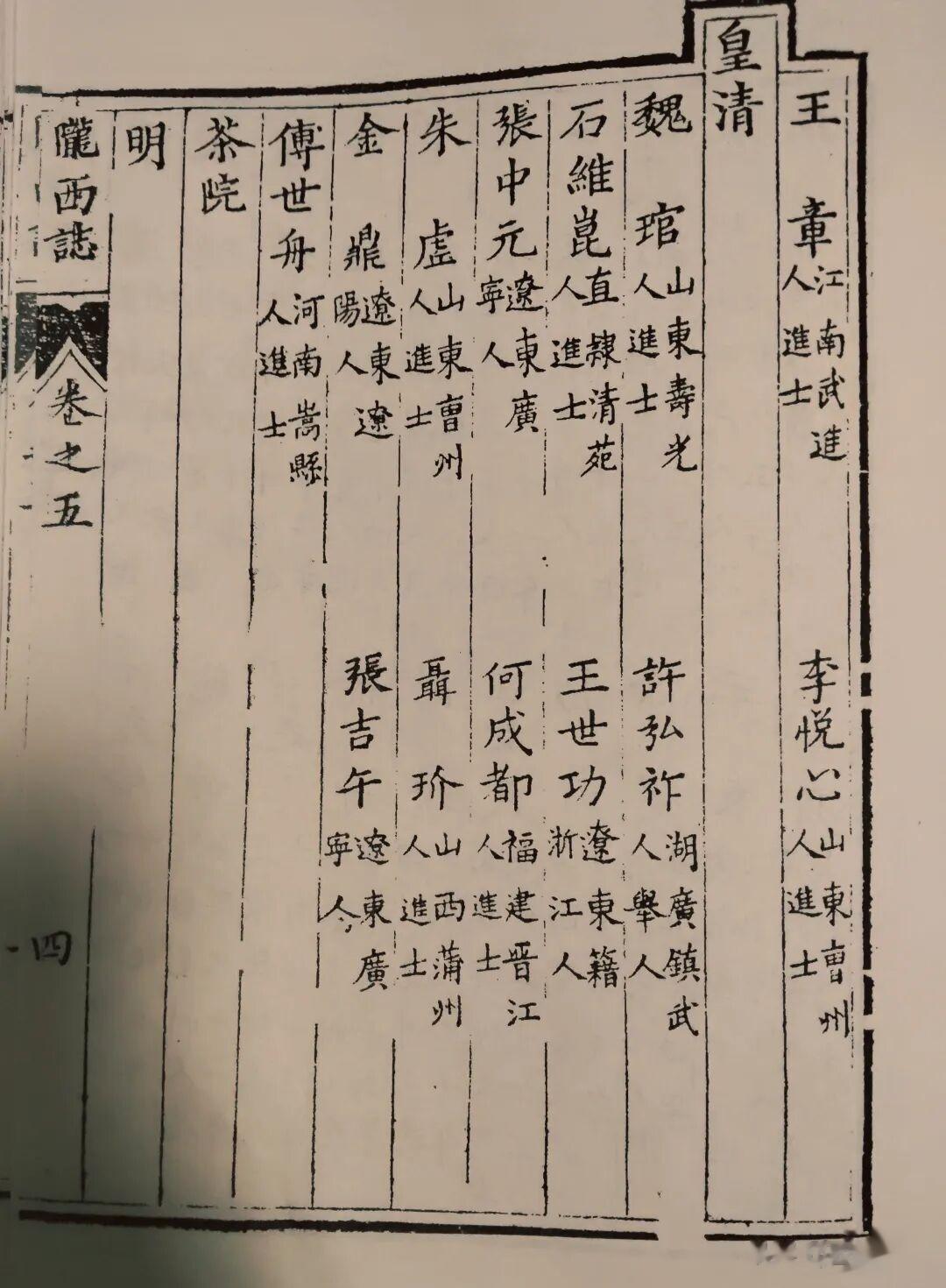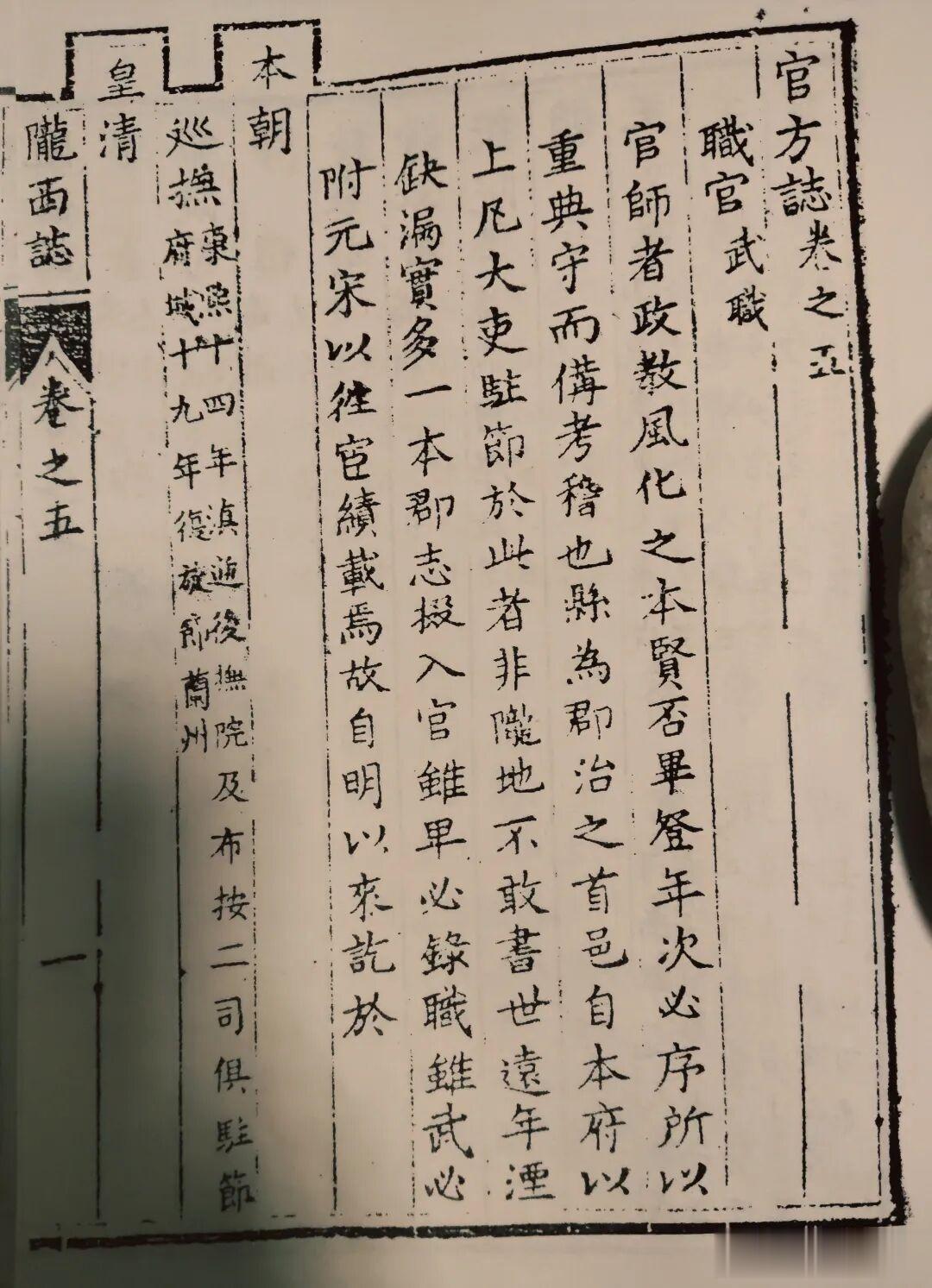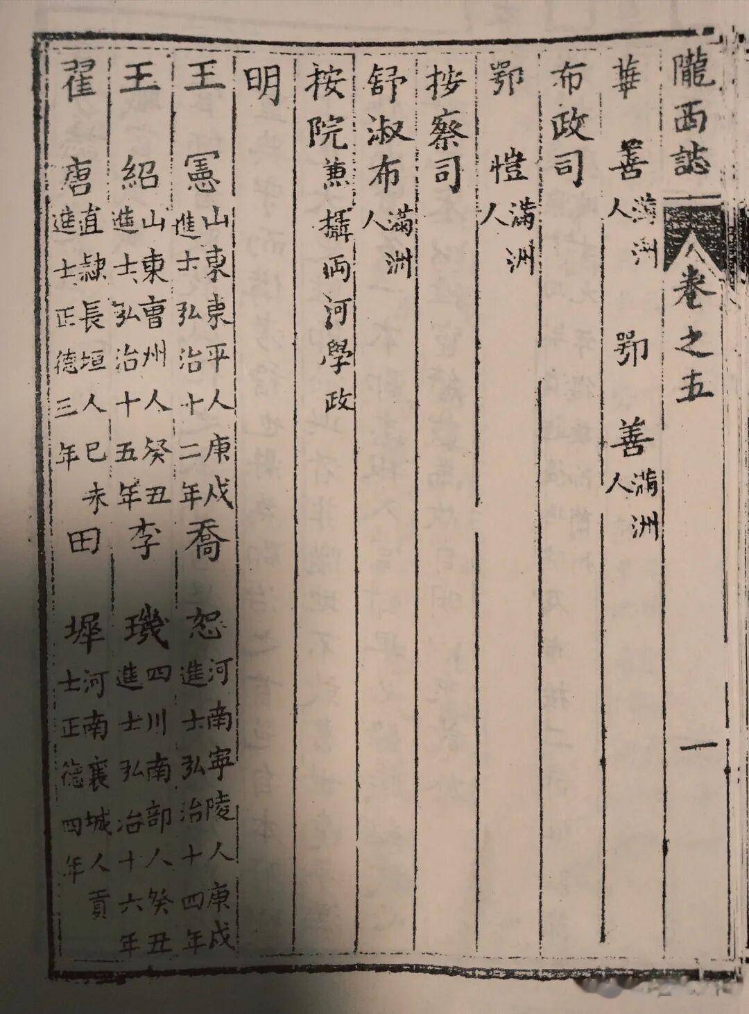 乾隆《陇西县志·官职志》对驻陇巡抚、布政司、按察司、茶院等省级机构官员的简介