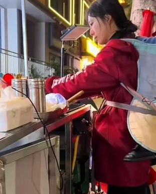 随后,博主上前给女子打招呼,还开玩笑说能不能送他一份苕皮,没想到,女子却痛快的答应了。