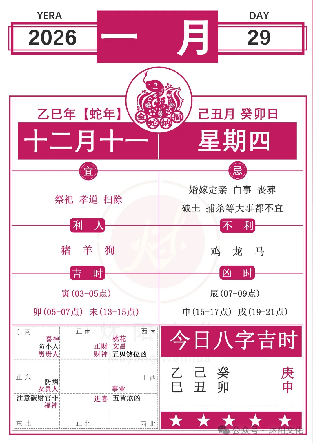 【炑阳文化每周吉日提前知,运势抢先布局!】正式上线啦,由炑阳老师亲自择吉