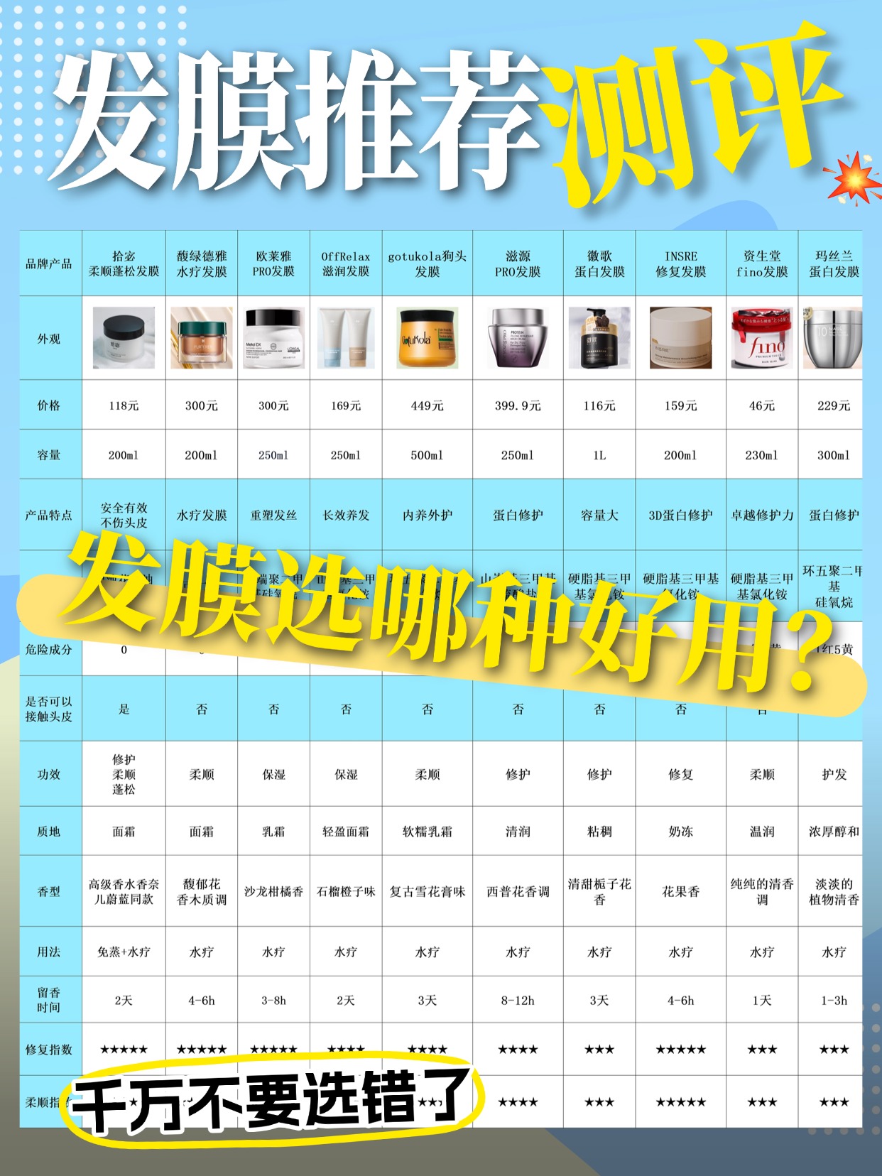 总有人问用什么牌子发膜比较好,还盯着发膜推荐测评,反复说千万不要选错了,今天就结合实测经验,讲点不踩坑的干货!重点解答发膜多久用一次,还有发膜头皮保养有什么误区,这俩点是选对发膜、不选错的关键。发膜使用频率很重要,正常发质每周 1-2 次足够,受损发质可以每周 2-3 次,天天用会让头发营养过剩,变得油腻扁塌,还浪费产品。然后头皮保养误区,最常见的就是把发膜涂头皮,发膜营养浓度高,涂头皮会堵塞毛囊,导致出油快、头屑多,甚至影响发根蓬松度,不管选什么牌子,都要只涂发中到发尾。选发膜别只看牌子,先控制好使用频率、避开头皮使用误区,结合发质选款,才能千万不要选错。接下来分享自己选购发膜时的一些经验,全是实测踩坑总结的干货,建议先收藏。