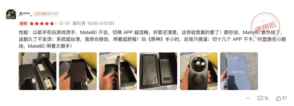 值得一提的是,我特意去电商平台查看了其他用户对华为Mate 80的评价,发现很多人的感受与我高度一致。譬如有人称赞其颜值高、商务感足,有人肯定其性能强悍、游戏流畅,更有人直接晒出实拍样张,坦言拍照效果出众。