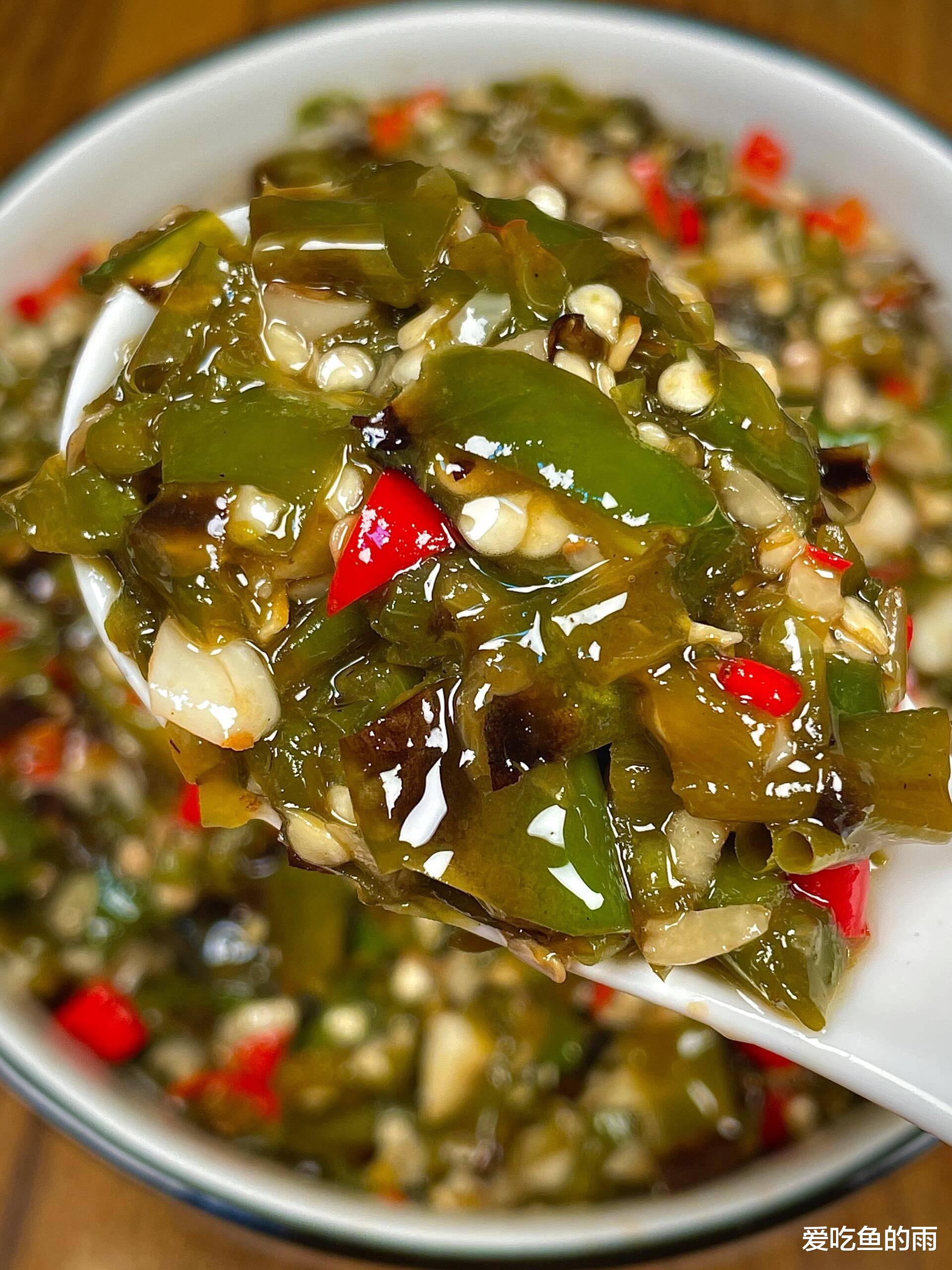 记忆中的烧椒酱,总与外婆的灶台相连。幼时看她将青椒架在炭火上,烟熏得她眯起眼,却笑得满足:“椒要烤透,焦得越狠,香得越深哩!”我蹲在一旁,望着焦黑的椒皮簌簌掉落,露出内里翠玉般的椒肉,总忍不住偷捏一块塞入口——烫得直跳脚,却辣得痛快。如今自己掌勺,当石臼中椒蒜渐成泥,那股熟悉的焦香窜入鼻腔,恍惚间,外婆的笑声与灶火的光影,竟与眼前的酱料重叠。