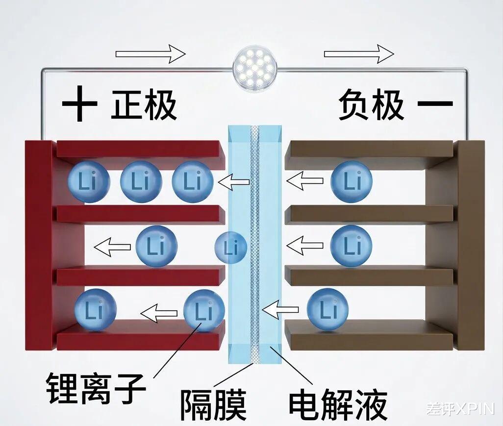 这里跟大伙儿简单科普一下,咱们平常使用的锂离子电池,它的充放电是靠锂离子穿过隔膜在正负极之间来回往返来实现的。
