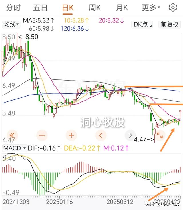 日k线图中,k线超跌反弹,今天涨停,不过上方压力较大,MACD金叉。