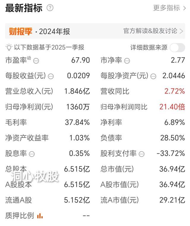 今年一季度,公司实现营业总收入1.85亿元,同比增长2.72%;归母净利润1360.27万元,同比增长2139.84%。
