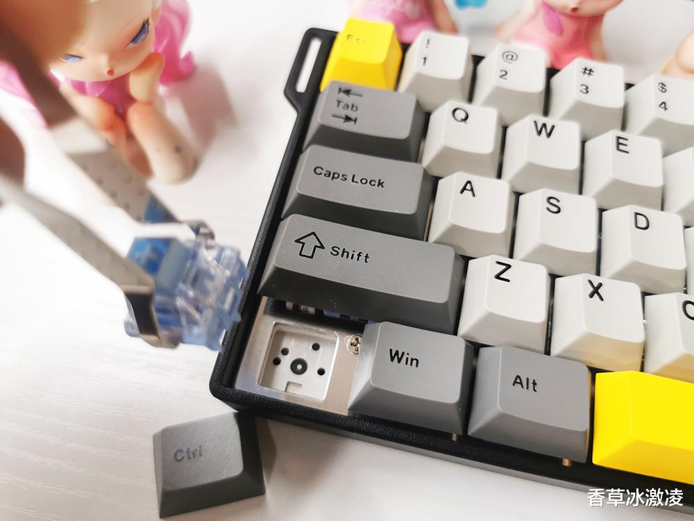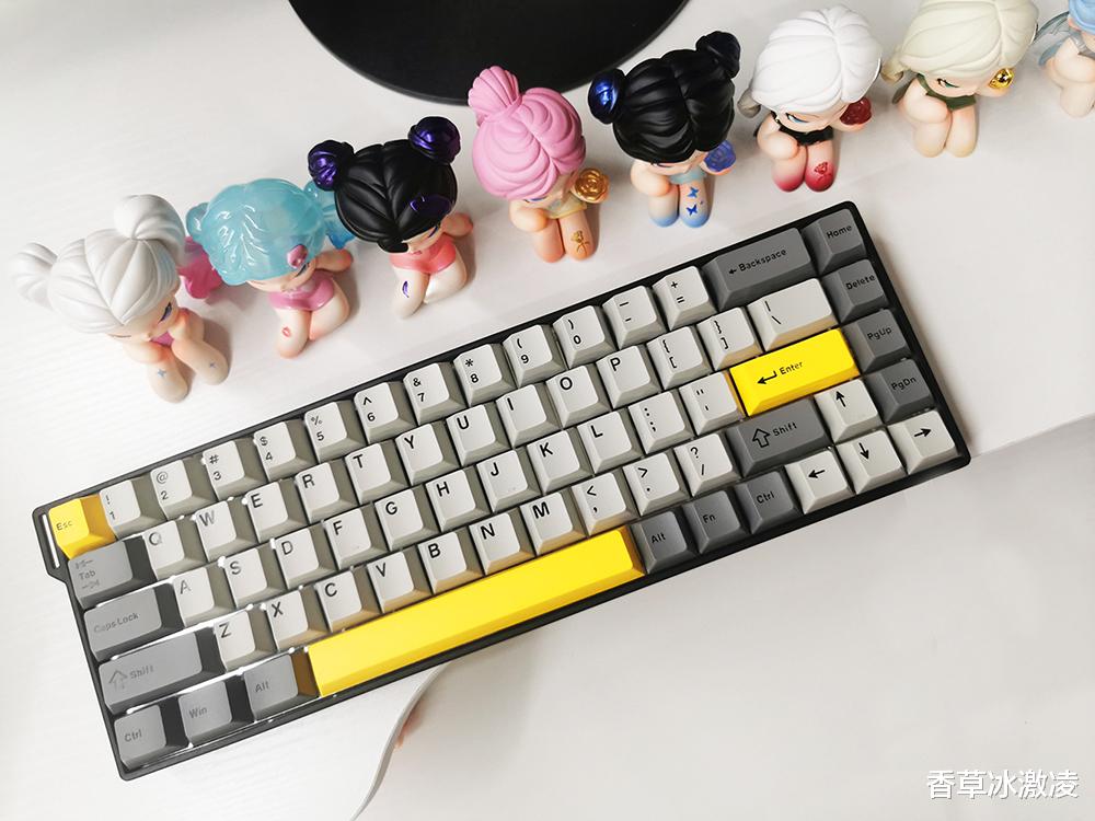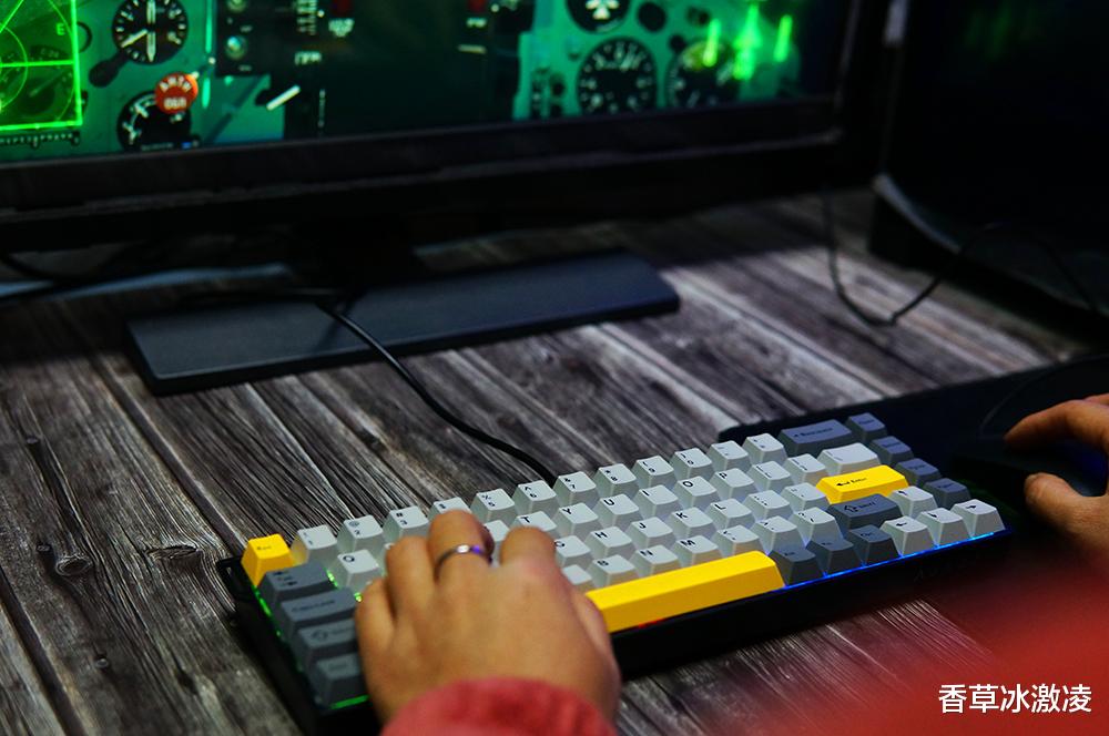 机身提供等高线白、等高线黑、星晚灰等多种时尚配色,我上手的星晚灰版本采用PBT 双色键帽,触感冰凉细腻,耐磨不打油,长期使用也能保持洁净外观。