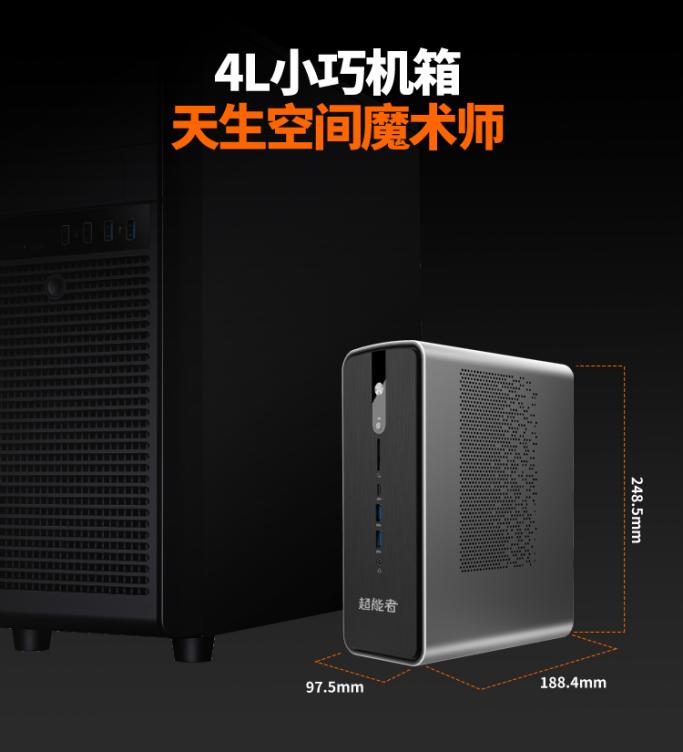 外观方面,七喜超能者AI助手机箱小巧便携,银黑配色未来感十足,整体尺寸为188.4×97.5×248.5mm,体积仅有4L,单机重量为3kg;
