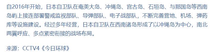 二 强烈反对日本政府管辖到2016年,日本更是不顾岛上民众的反对,强行在与那国岛修建军事设施,并部署了监视部队,想要将这里打造成军事前哨站,后续,日本又增派电子战部队,甚至允许美国海军陆战队将军用物资运上岛,以此为战略支点,支持“台独”分子进行分裂活动。