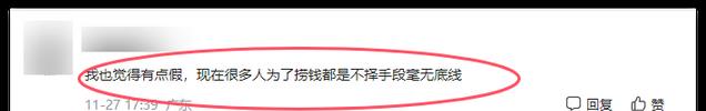 “我也觉得有点假,现在很多人为了捞钱都是不择手段毫无底线”。