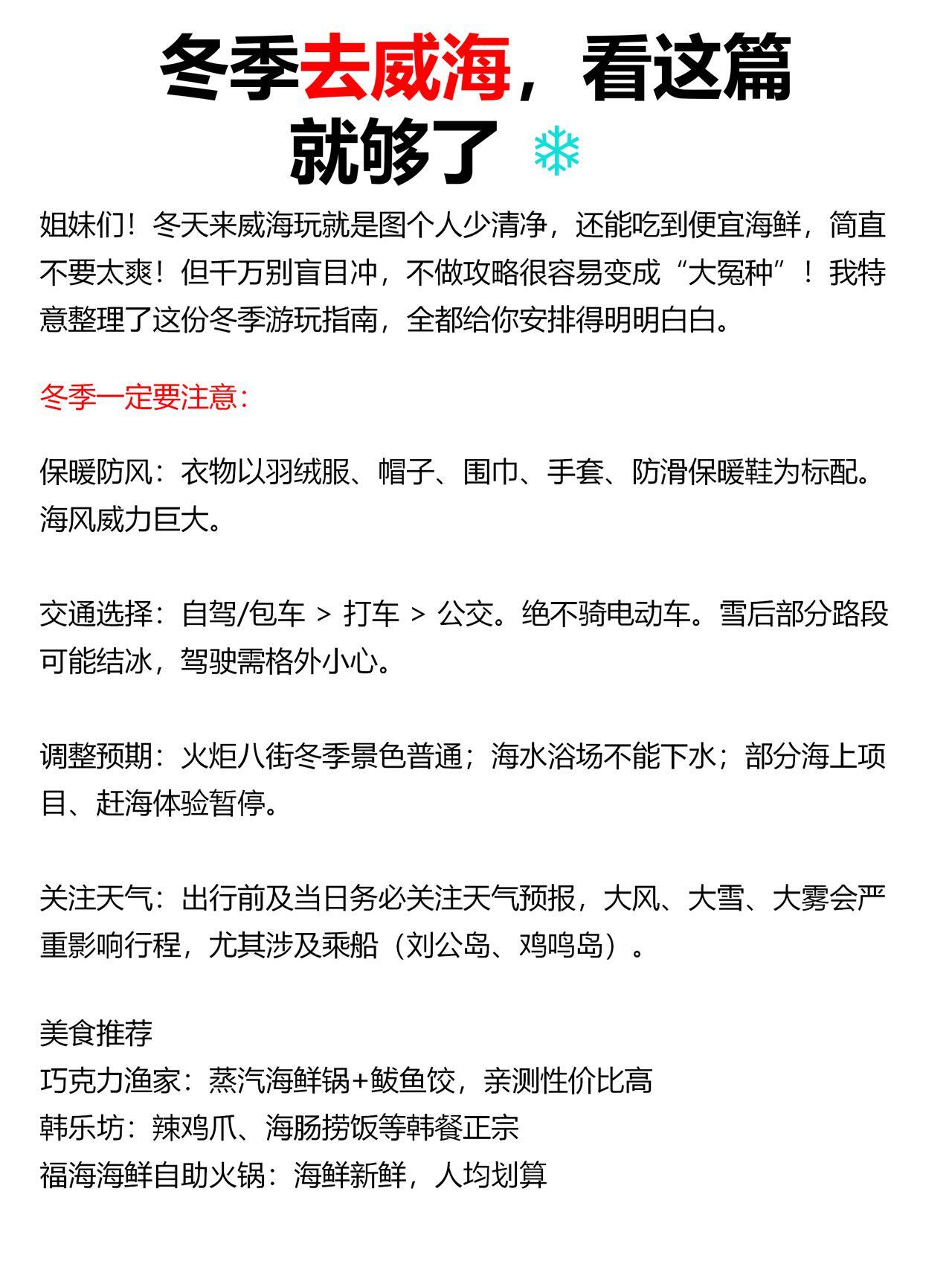 来威海先看这篇攻略,劝你别当大冤种姐妹们,这份攻略已经把冬季威海的路都踩平了,直接照着玩就行!记得点赞收藏,转发给要来威海的姐妹,别再当大冤种啦
