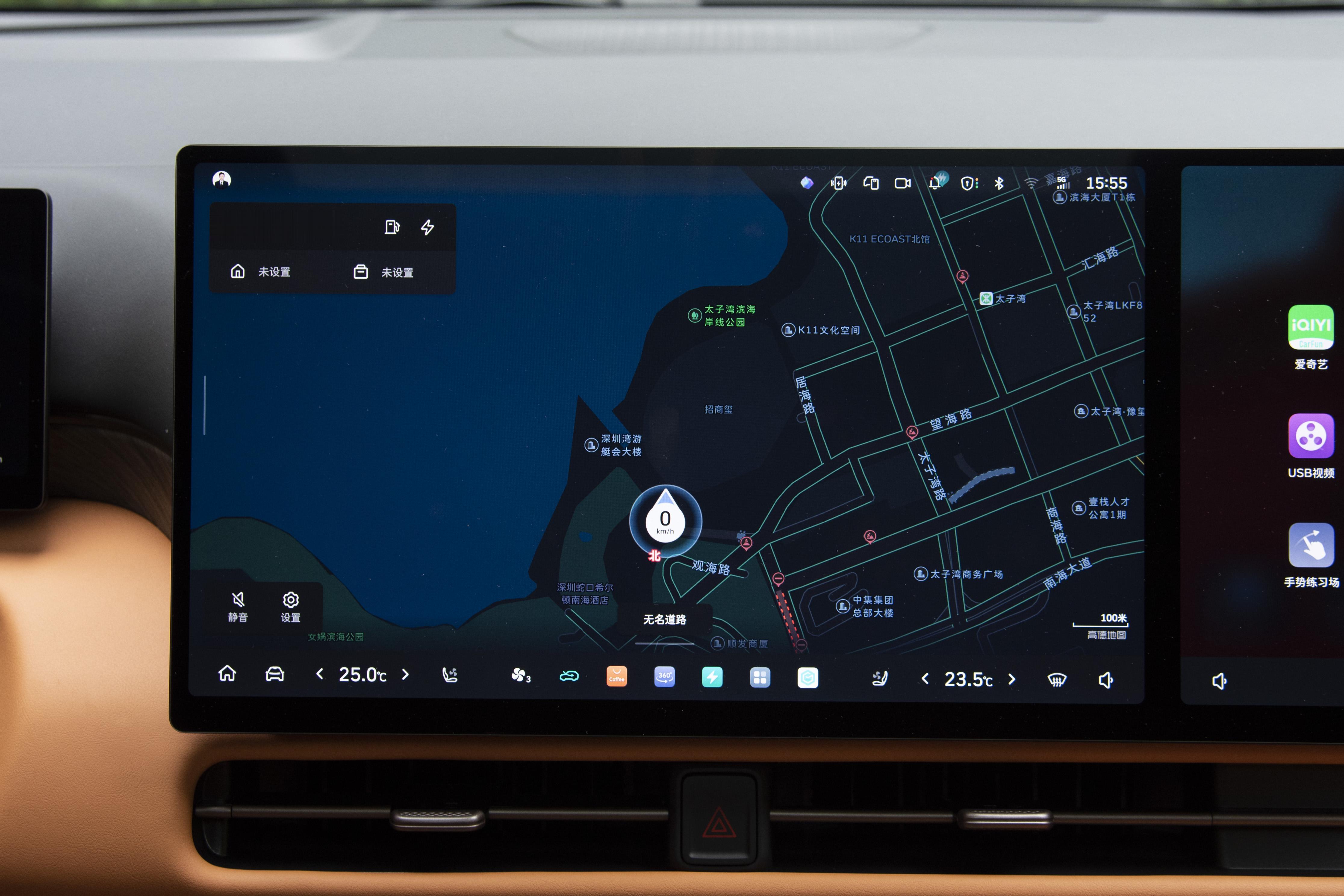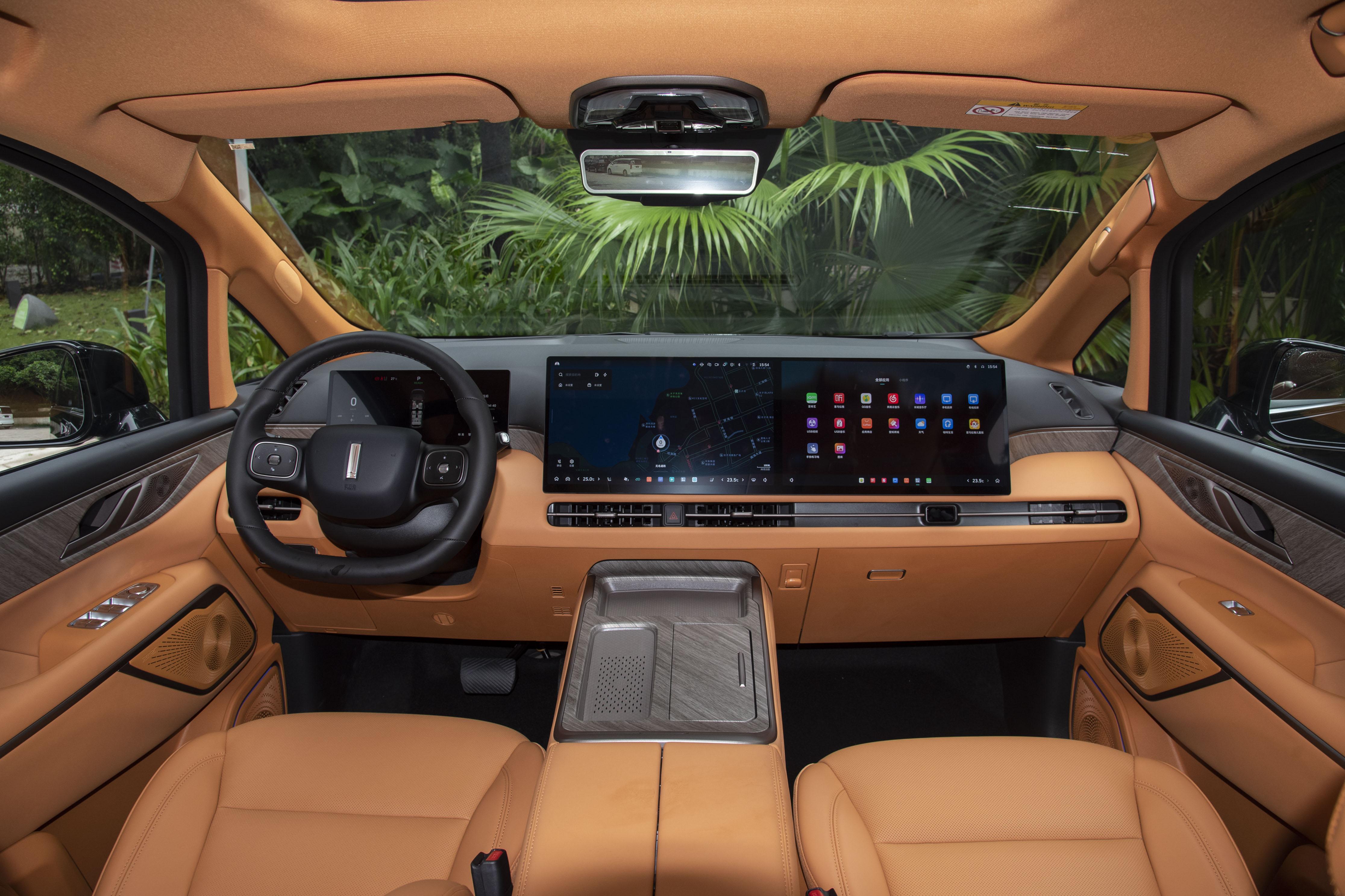 中控台采用了环抱式设计,那些流畅的线条,就像一双温柔的手,把你紧紧地包裹在其中,让你一坐进去,就感觉被它呵护着,特别舒服。中控部分更是厉害,配备了15.6英寸2.5K屏与副驾娱乐屏双联屏,就像两个大平板一样,显示效果特别清晰。再搭配上12.3英寸2K仪表,各种信息一目了然。而且它还搭载了Coffee OS 3系统和高通骁龙8295P芯片(24G内存 + 256G存储),接入Coffee GPT大模型,支持六音区语音、手势交互、多场景模式及华为HiCar互联。这就好比你给车请了一个超级聪明的小管家,你只要动动嘴或者做个手势,它就能帮你完成各种操作,特别方便。