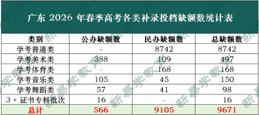 广东2026年春季高考录取已经全部结束。补录投档过后,即便省控线已下调20分(省控线170分),仍有9671个招生计划未能招满,其中公办566个、民办9105个。